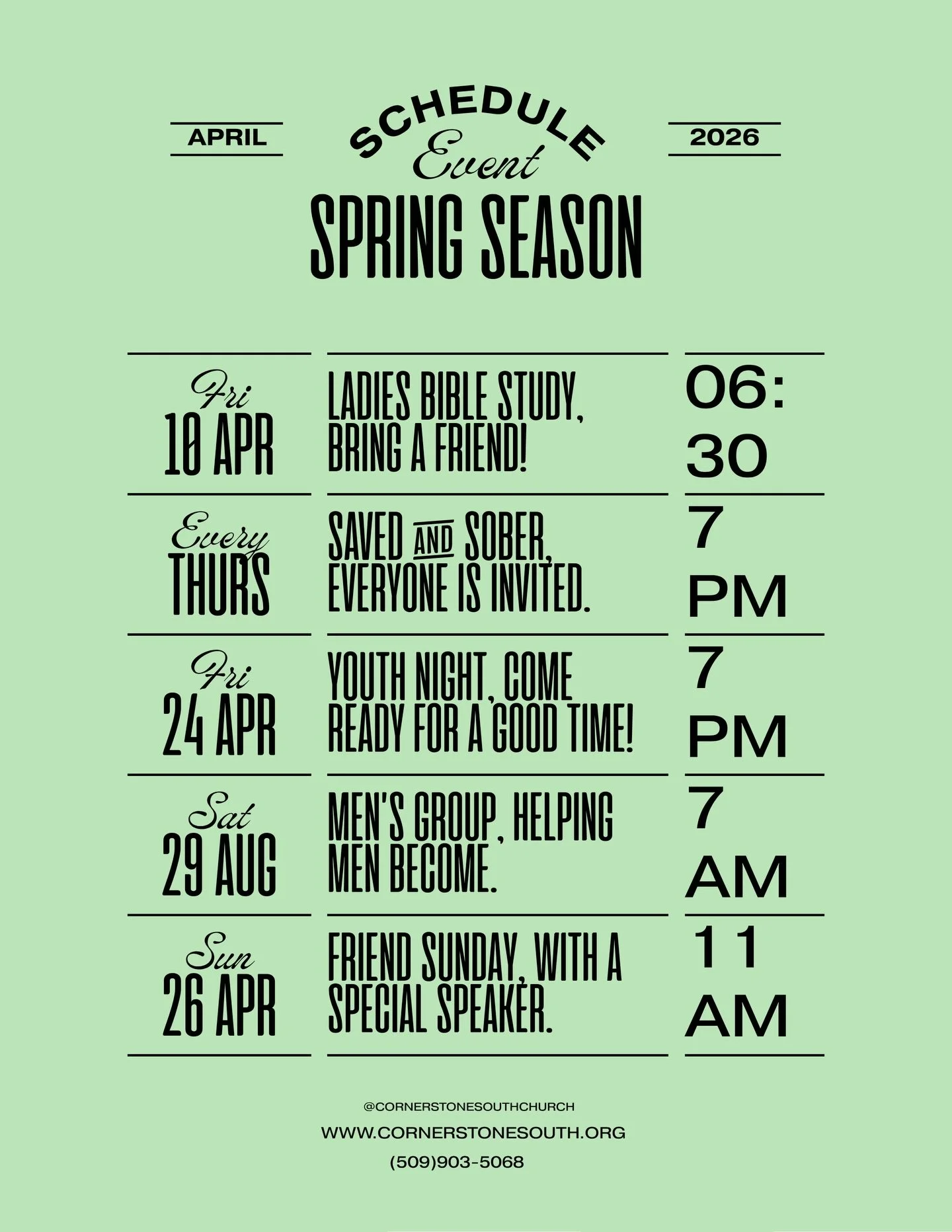 Cornerstone South is an independent church that is driven to reach, teach, and equip the church. We would be honored if you teamed up with what God is doing on the South Hill in Spokane. We understand that there is more then one way to give so pray with us as we work to reach this city in Jesus name.